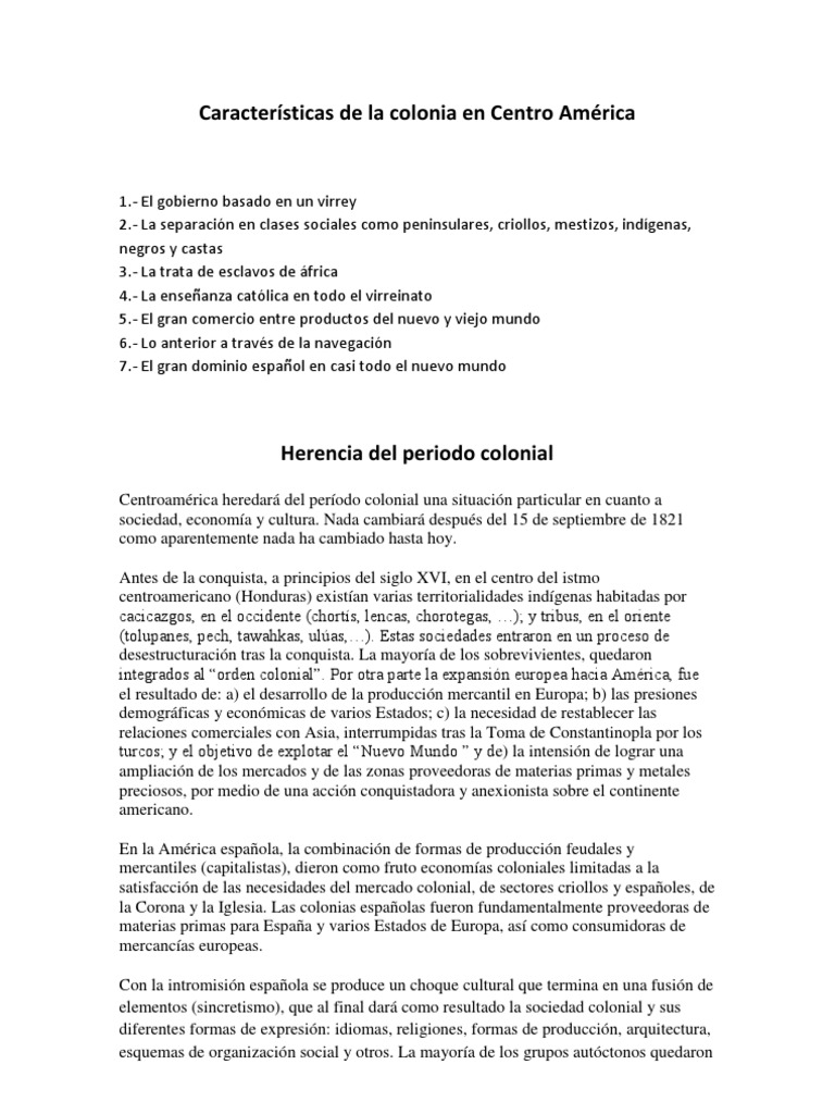 Caracteristicas De La Colonia En Centro America Pdf Colonialismo Nueva Espana
