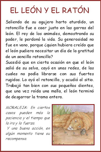 Fábula la Ratita Presumida. Fábulas cortas y largas donde aparecen toda clase de animales personas. Fábulas de Esopo con su moraleja. Es probable que los niños presten más atención a las historias si estas incluyen personajes animales que demuestran cualidades humanas. Esopo Samaniego La Fontaine. Los personajes animales nos enseñarán valores muy importantes con historias simples y cortas.