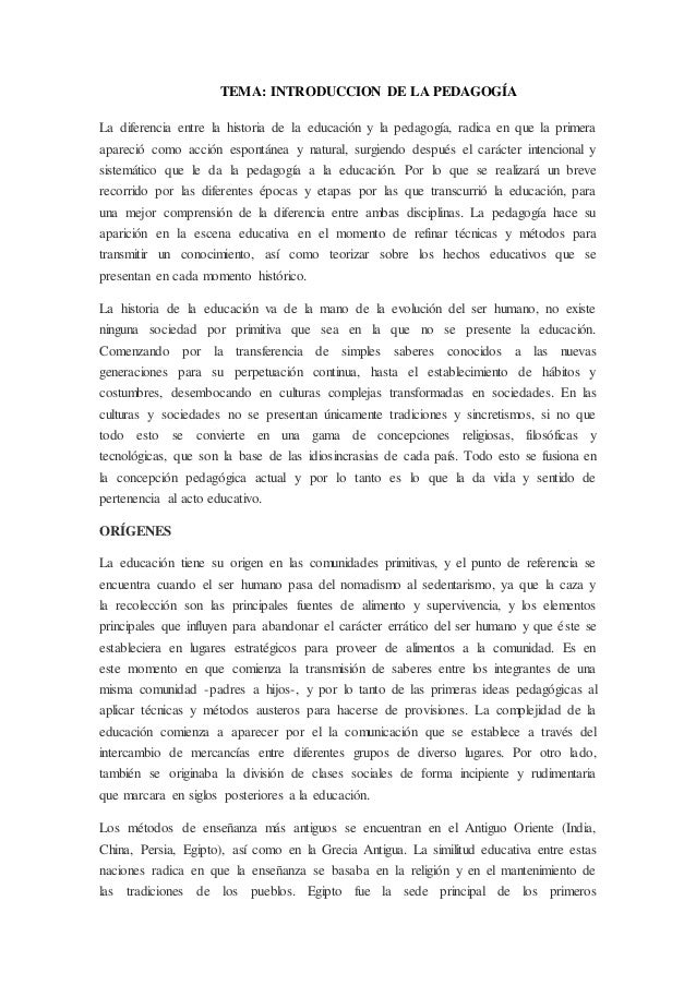 Introduccion de la pedagogia. Perspectiva histórica de la Pedagogía Social. 4 Con todas sus fallas como la carencia de un curso de trabajos manuales para nios que haba sido incluido en la ley de 1867 la de 1888. Resumen Este artículo de investigación desarrolla un enfoque sobre la pedagogía desde una perspectiva. El tema fundamental de la pedagogía u objeto de estudio es la educación. Moviliza y facilita la actividad física.