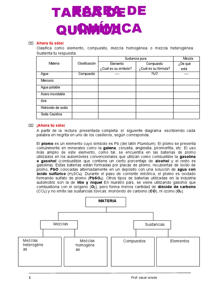 Tarea Sustancias Mezclas 4to Y 5to Sec Pdf